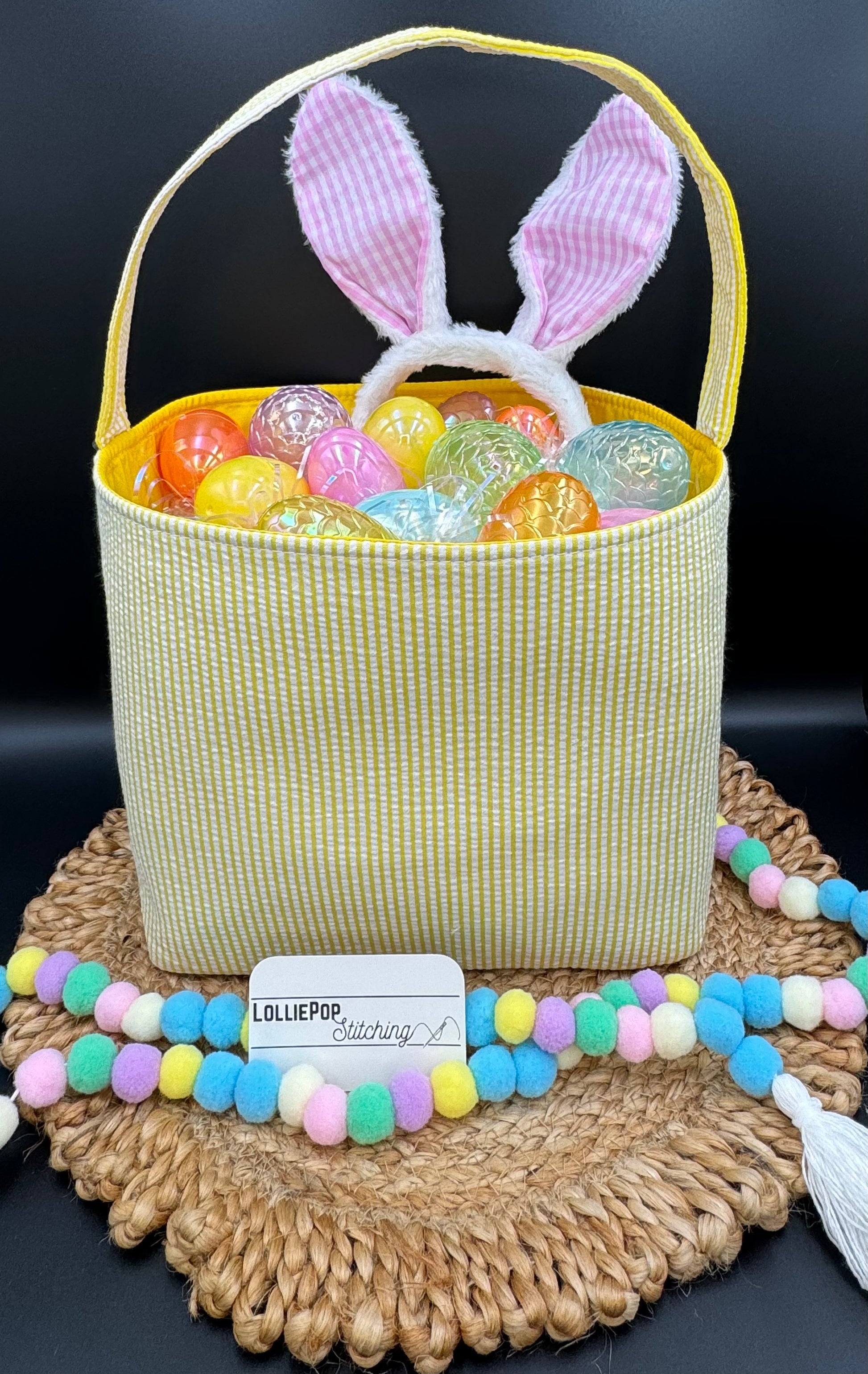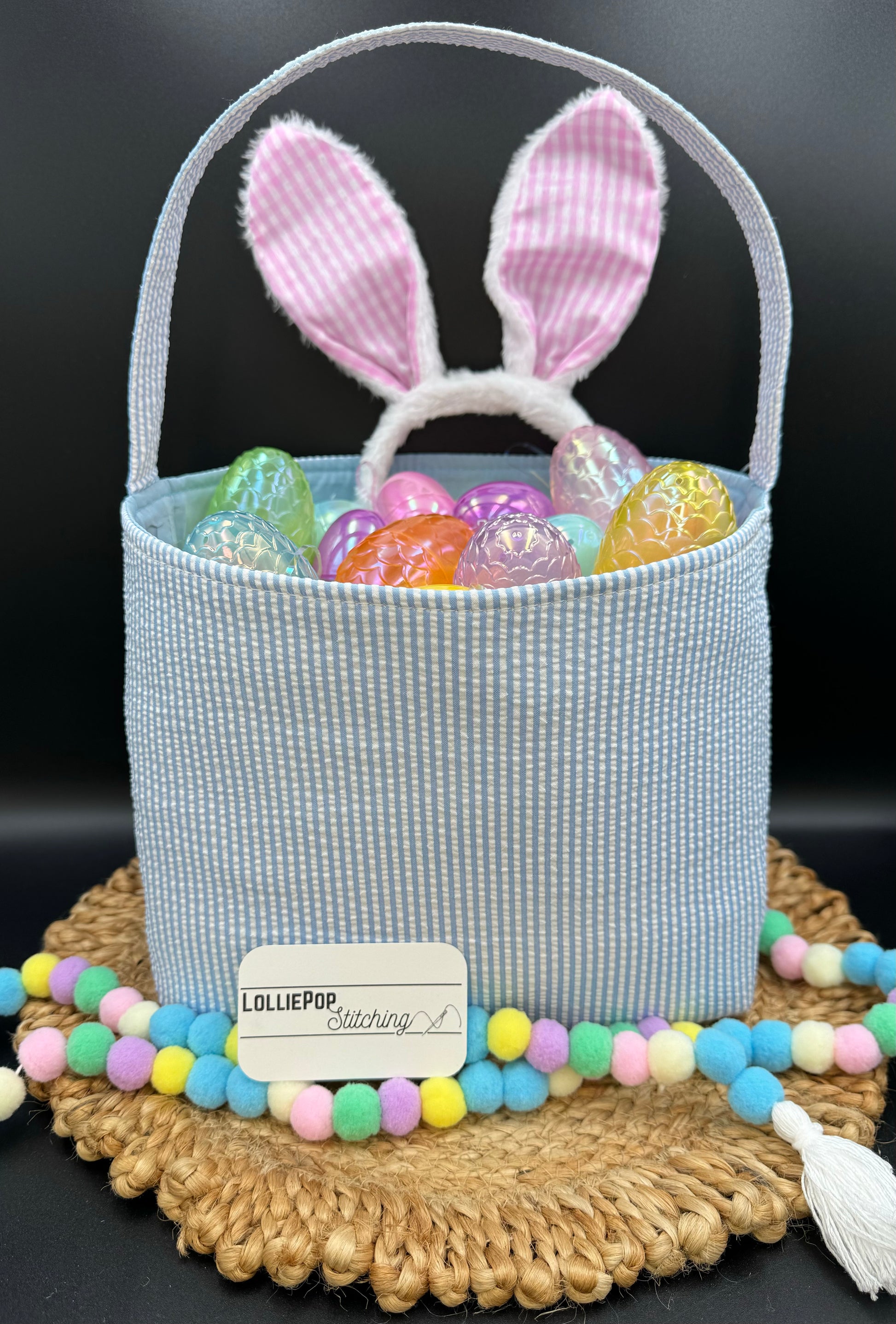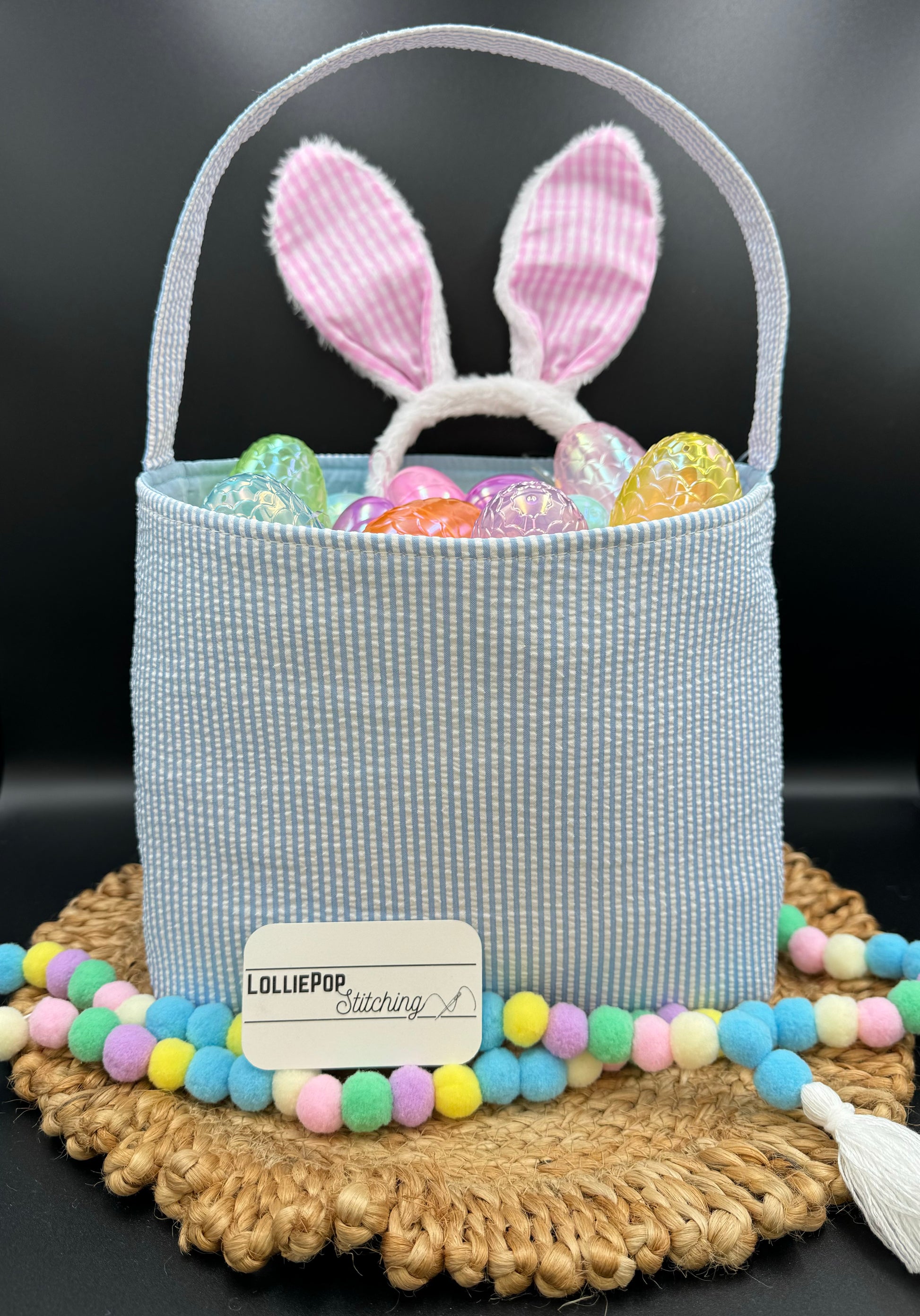 Seersucker Easter Basket - Personalized Embroidery